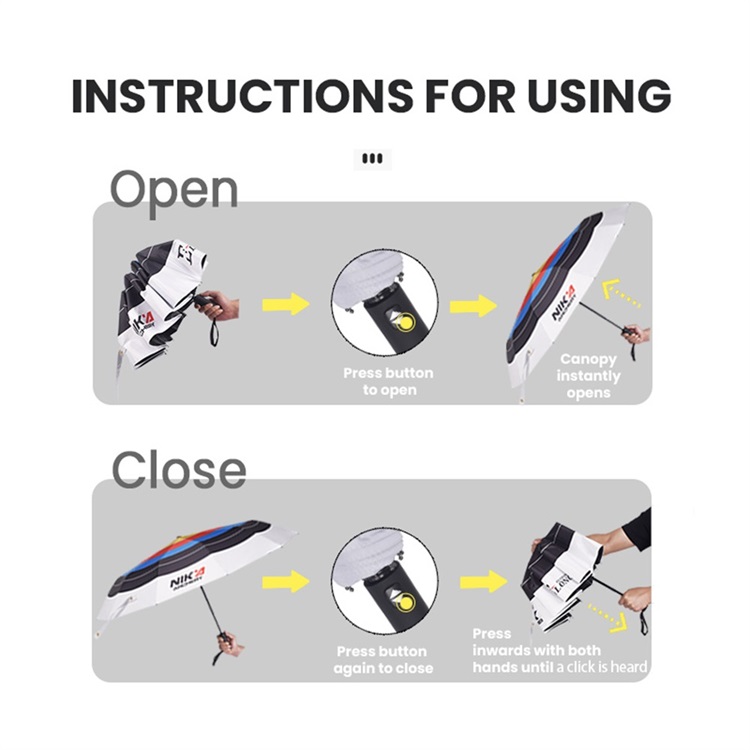 Key Features: Waterproof, sun protection, UV resistant, automatic open/close, 3-fold design