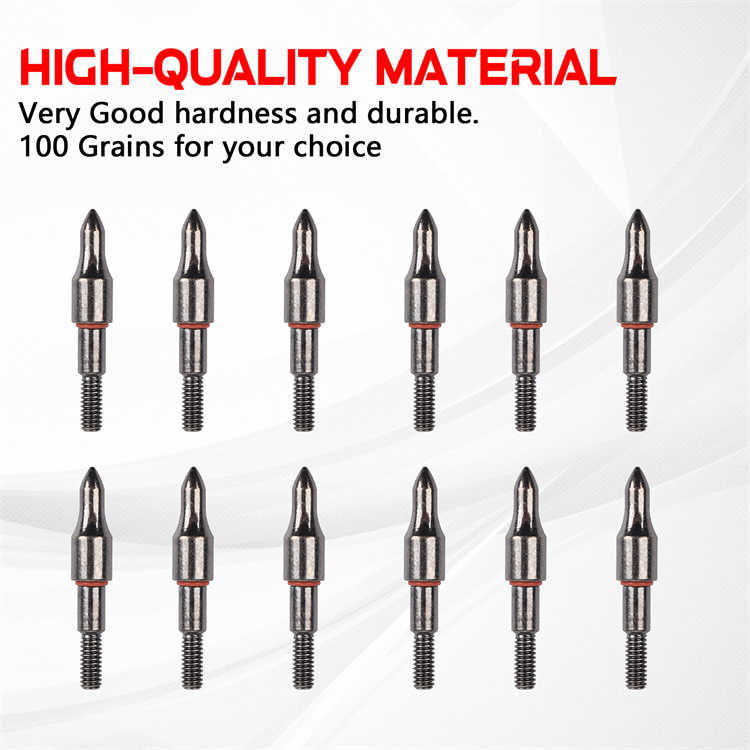 High-precision steel screw-in field points designed for target practice and hunting. Compatible with 9/32" outside diameter arrow shafts. Smooth tapered design minimizes target damage and ensures easier arrow removal. Rubber o-ring keeps the point secure and prevents loosening during use. Easy to install, durable and reusable.